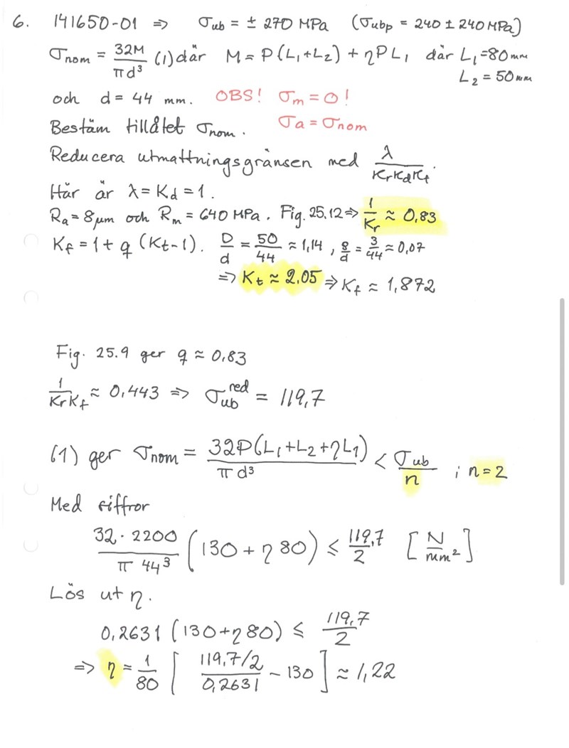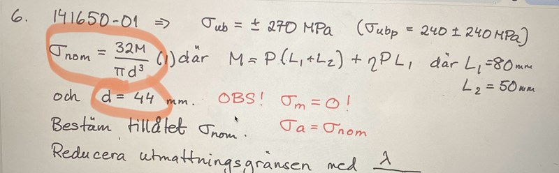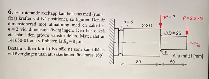 Detta innebär att Dimensioneringen mot utmattning med säkerhet kan antas gälla vid diameterövergången. Det man sedan då undrar är om addition av lasten som har inverkan på utmattning vid kälen till vänster leder till en säkerhet .
