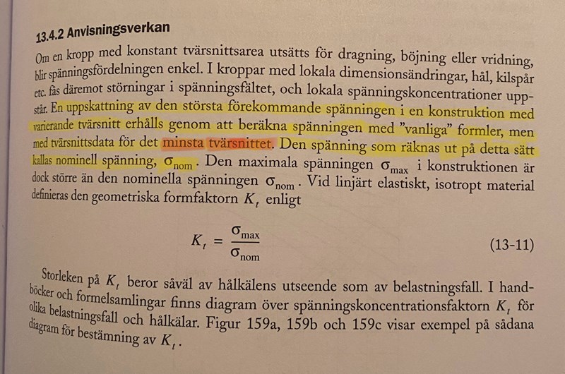 SaintVenant skrev:Det man kan visa är att böjspänningen vid diameterövergången är oberoende av lasten . [Böjmomentet] är nämligen lika med