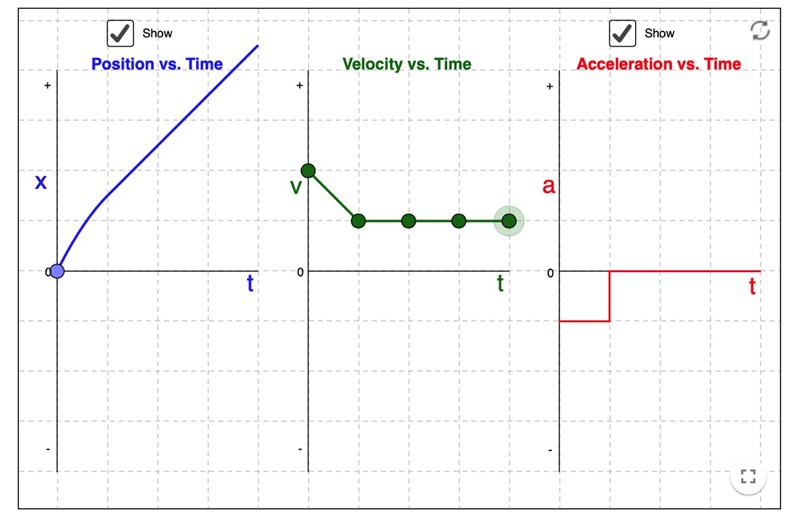 En jättebra interaktiv graf för att se sambandet mellan s, v och a finns här: