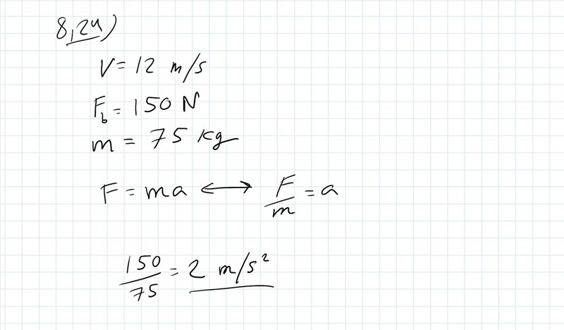 Hej, jag har en fråga om a uppgiften här. I facit står det är svaret är a = 2 m/s^2, vilket jag ju också får det till i min uträkning. Men borde det inte vara minus två? Alltså -2 m/s^2, eftersom det är en inbromsande rörelse?