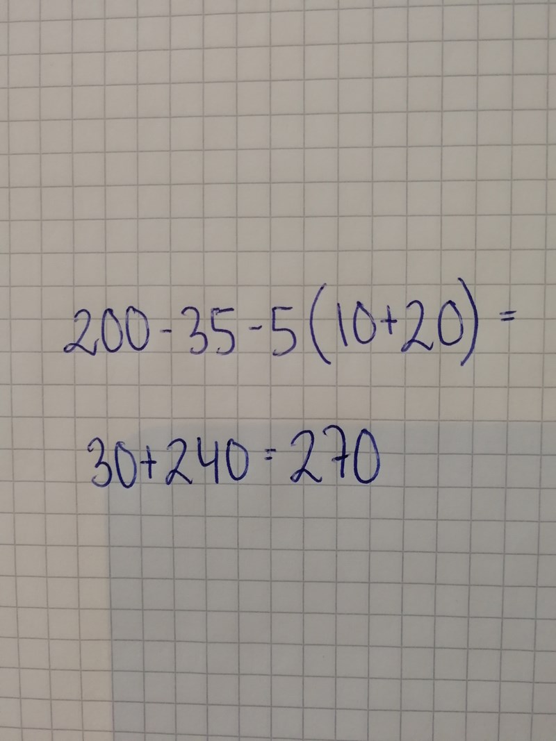 Jag börjar med att räkna ut parantensen först. Sedan adderar jag resterande tal eftersom två minustecken = +