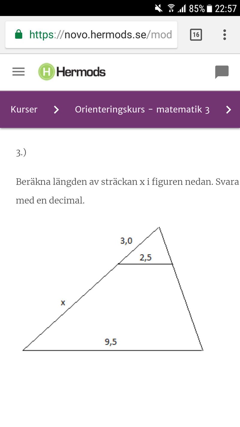 Snälla kan du säga mer utförligt? 10 år sedan jag räknade tal som dessa.. har försökt lösa detta tal med hjälp av likformighet och får fram 8,4 alt 3,8 vilket är helt fel. Tack!