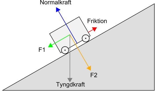 Uppdaterade och visade min lösning hittills. Friktionskraften är ju beroende av normalkraften som i sin tur är beroende av tyngdkraften.