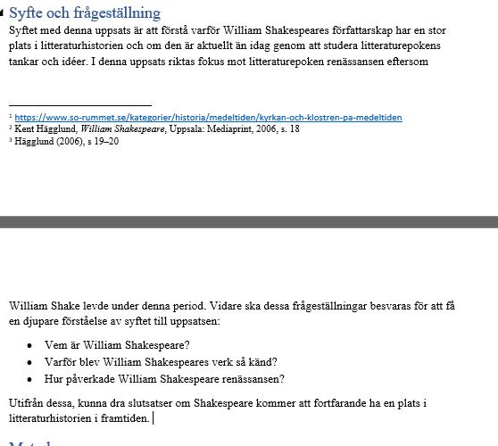 Jag skriver om författaren William Shakespeare, detta är Syfte och frågeställningsdelen