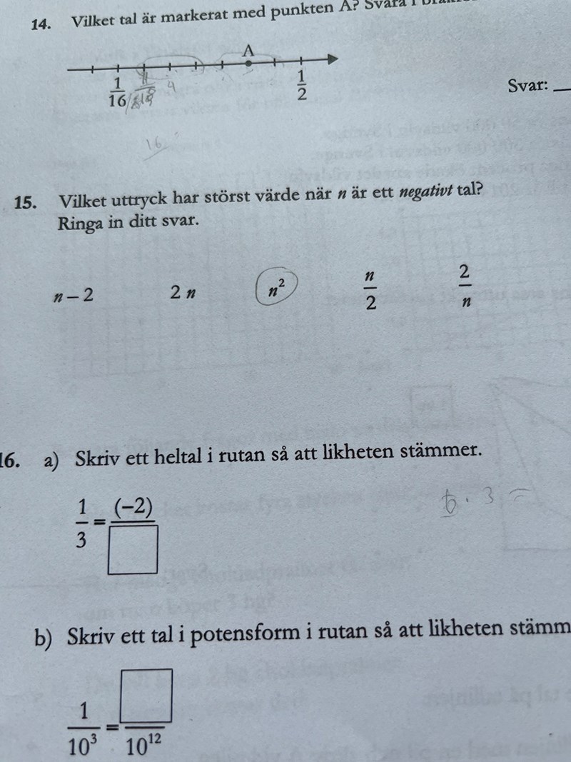 Behöver hjälp med uppgift 15 jag tror att det är n upphöjt i 2 då om n är negativt då är den lika med positiv om -n*-n=+n. Jag har dock inte säker på om jag har rätt.