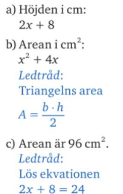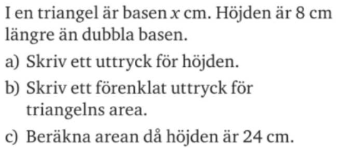 Och jag vet att höjden är 2x+8=24 då räknar jag såhär: