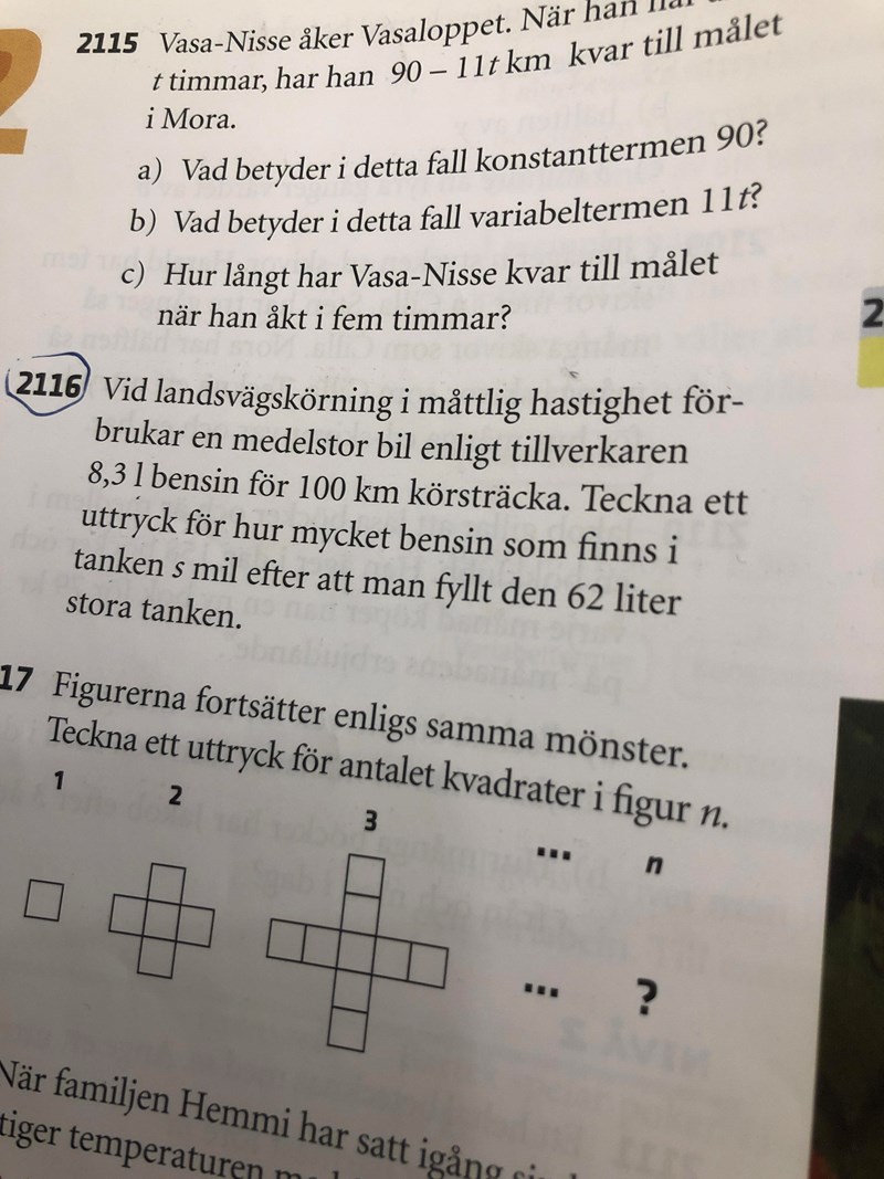 men det som mest förvirrar mig är meningen ”teckna ett uttryck för hur mycket bensin som finns i tanken s mil” ...