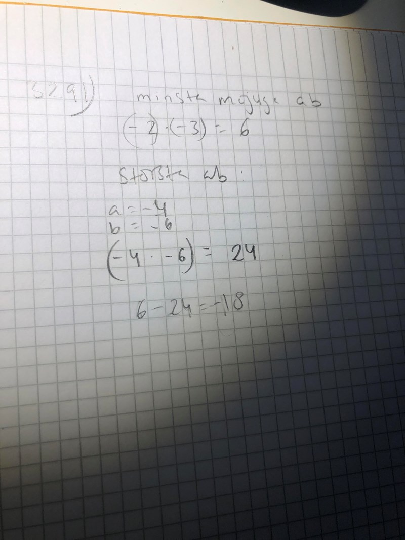 Jag vet att minsta möjliga värdet på a är 6 eftersom a=-2 b=-3 så tar jag -2*-3=6 vilket är minsta möjliga värdet på ab.