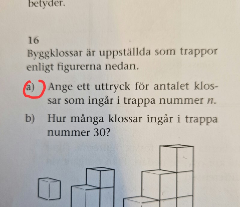 Hur många blå + röda rutor (antal klossar) är det?