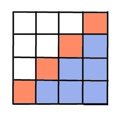 Figuren visar klossarna sedda från sidan för n=4. Den är kompletterad med vita rutor.