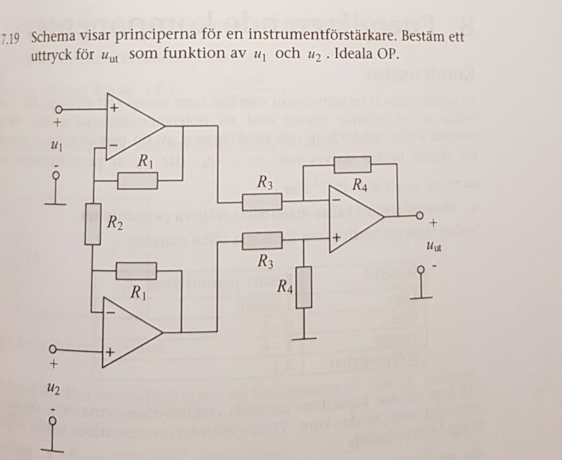Ställ upp uttryck för Uut, som funktion av utspänningarna från de första två op-amparna.