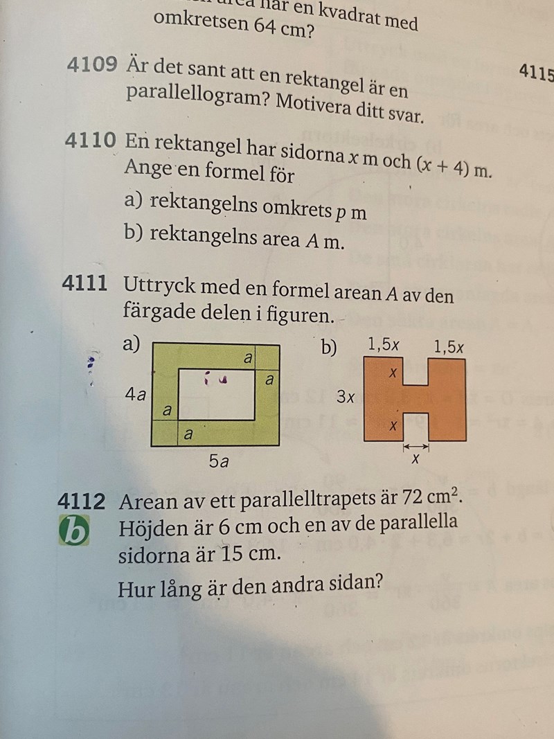 Den stora rektangeln har långsidan 5a och kortsidan 4a .