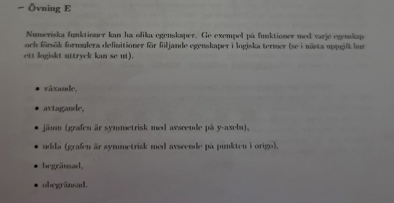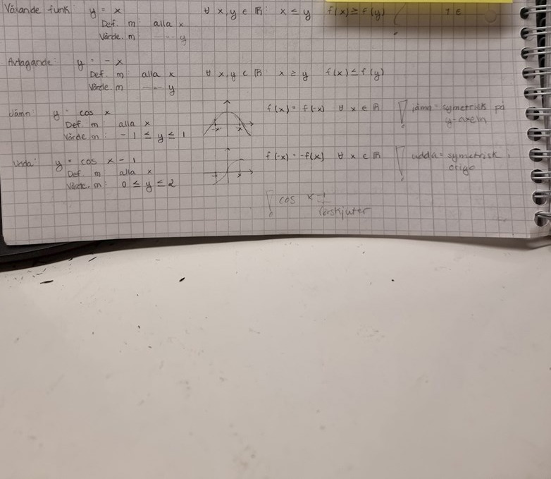 Jag ska ge ex på en funktion och beskriva med logiska termer för följande: växande, avtagande osv