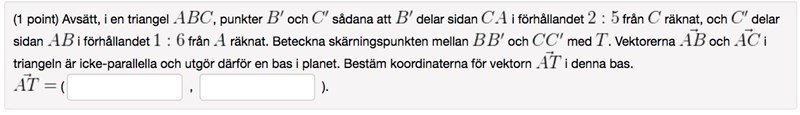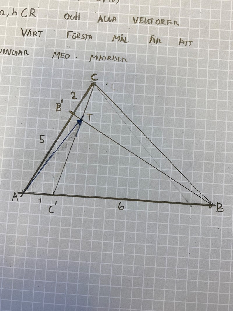 Såhär har jag ritat, jag vill alltså uttrycka AT i baserna AC och AB!