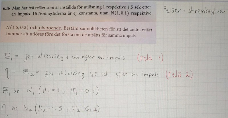Jag vet hur jag ska lösa uppgiften men behöver lite hjälp att uttrycka sannolikheten "det andra reläet kommer utlösas före det första om de utsätts för samma impuls". Hur kan man tänka?