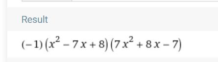 factor (x^2-7x+8)(7-8x-7x^2) - Wolfram|Alpha (wolframalpha.com)