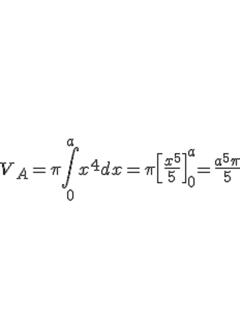 Grafen till funktionen y = x^2 begränsar ett område A tillsammans med linjen x = a (där a > 0) och x-axeln. Kurvan begränsar också ett område B tillsammans med linjen y = b (där b > 0) och y-axeln. När området A roterar runt x-axeln bildas en rotationskropp med volymen VA, och när området B roterar runt y-axeln bildas en rotationskropp med volymen VB.