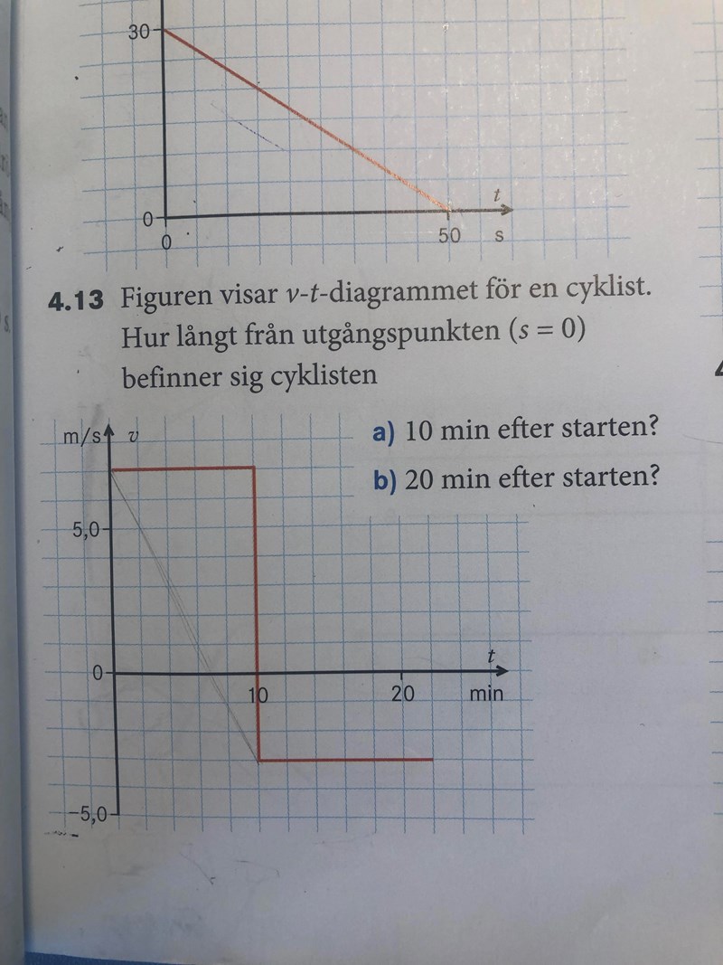 Hej! Skulle behöva veta varför man inte kan räkna ut arean i uppgift a) för att ta reda på förflyttningen? Eller vad gör jag fel. Jag tänker: 1*10*60(för att det ska bli minuter)/2= 300, men det blir fel! Jag vet svaret och hur man räknar ut det men varför blir det inte samma när jag räknar med arean?