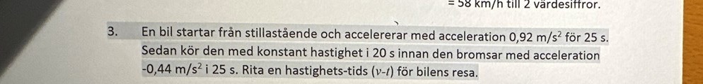 Enligt uppgiften, mellan t=25 s och t=45 s: står bilen stilla eller kör den med konstant hastighet?