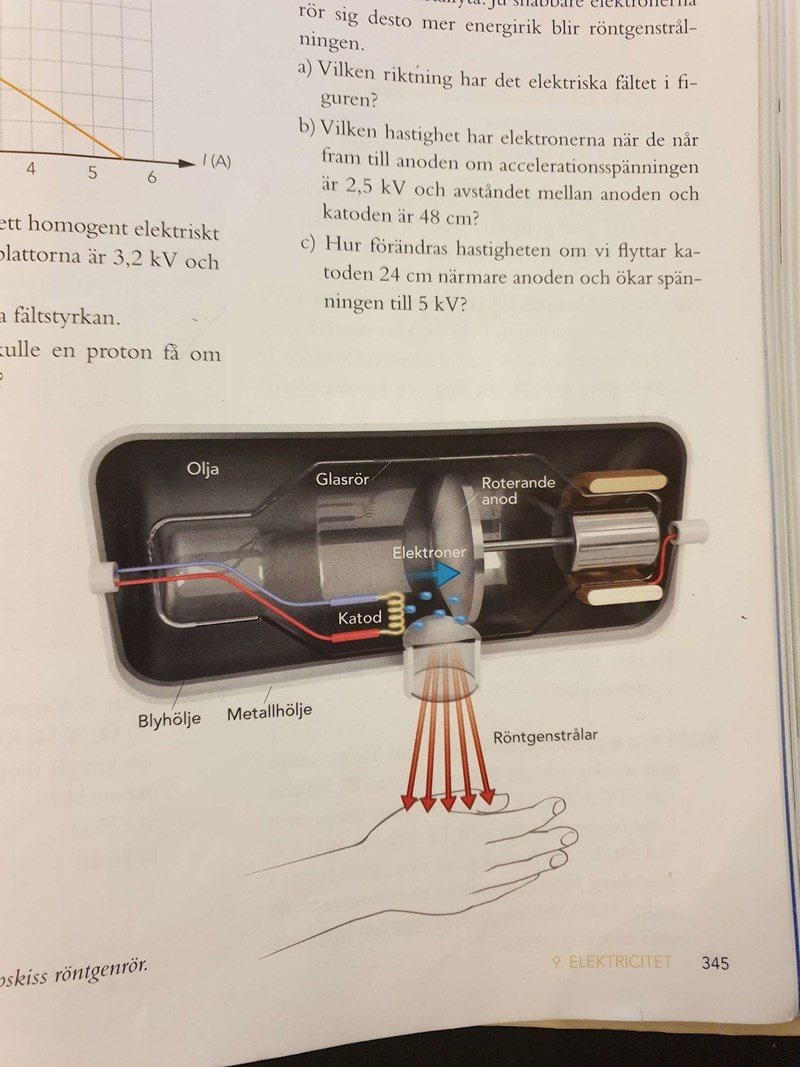"Strålningen från ett röntgenrör skapas när elektroner med hög hastighet slår in i anoden som består av en metallyta. Ju snabbare elektronerna rör sig desto mer energirik blir röntgenstrålningen."