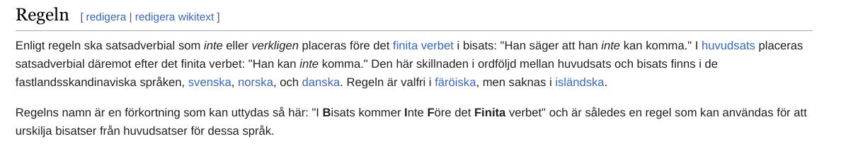 Vid bisatser gäller alltså BIFF-regeln. Den säger att i bisatser kommer "Inte" före det finita verbet. Vill du undersöka en mening för att lista ut vad som är bisats och huvudsats sätter du in ordet "inte" vid det finita verben i meningen. Vi tar mening 1c) och provar: