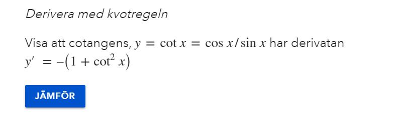 Laguna skrev:Vad är cotangens. Det står cot(x) = cos(x)/sin(x). Det är cotangens.