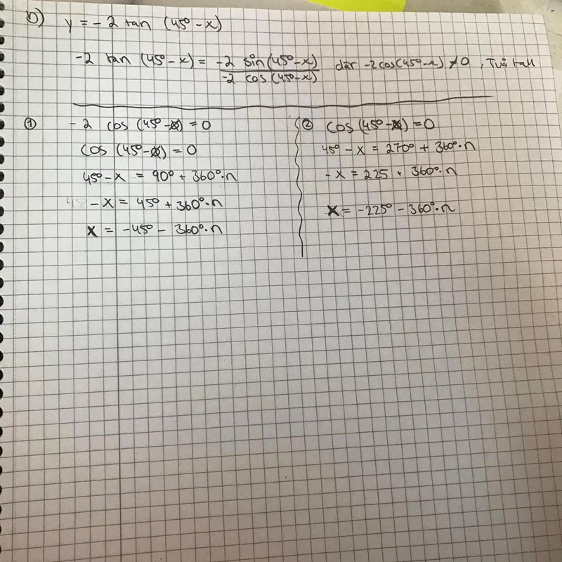 Hej min uppgifter säger att jag ska ange funktionens värdemängd och definitionsmängd för y= -2 tan (45* - x) och jag har börjat med min uträkning men får en negativ period? Vad är det för fel jag gjort?
