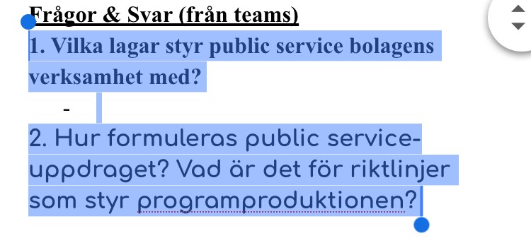 Så riktlinje kan vara att de ska vara sakliga och opartiska, medan lag kan då vara att tv- och radio-lagen.