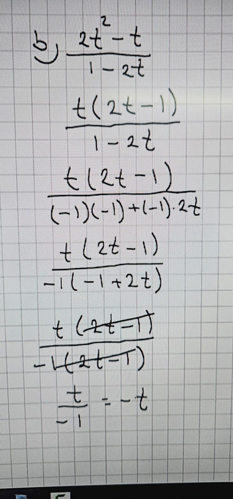 Nu kan vi byta ordning på termerna innanför parenteserna i (-1+2t), vilket ger oss (-1)•(2t-1)