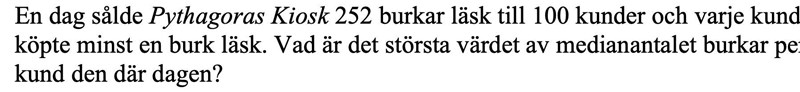 2,25 burkar var kan man inte köpa. Och medianen av heltal kan bara vara ett heltal eller ett heltal plus 0,5, så jag tror du behöver gå igenom ett litet exempel, där man kan visa vad alla kunder köper.