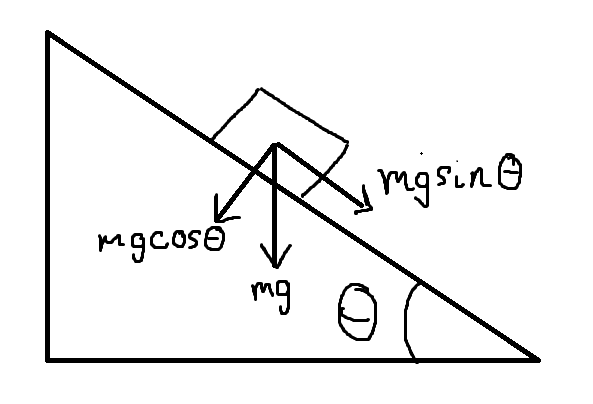 Sinus och kosinus dyker upp i kraftanalyser då man vill dela upp en kraft i dess komposanter. I fallet med ett lutande plan kanske en låda glider med vinkel mot horisontalplanet. Från lådans masscentrum verkar mot jordens masscentrum en tyngdkraft. Eftersom planet lutar kommer däremot bara en _del_ av denna tyngdkraft driva röreslen ned för planet, nämligen den som har samma riktning som rörelsen. Se principiell figur nedan: