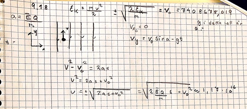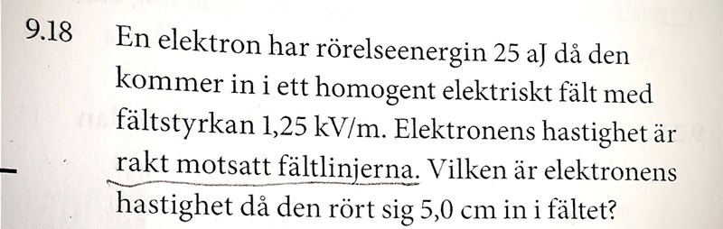 Axiom skrev:Smaragdalena skrev:Kommer elektronens hastighet vara större eller mindre efter 5 cm, jämfört med den ursprungliga hastigheten?