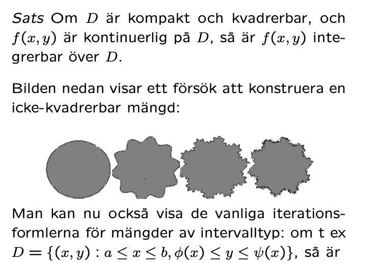 1 ) Hur kan en rand vara en nollmängd? nollmängd: Ett område i ℝ2/ℝ3 är kvadrerbart om dess rand är en nollmängd, dvs kan täckas av rektanglar/rätblock av godtyckligt liten sammanlagd area/volym. Hur kollar man det, om ngn kan ge en tips på en funktion.