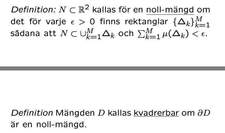 N är en mängd, den är rand till D. D kallas kvadrerbar om N=∂D är en nollmängd. Men vad betyder nollmängd?