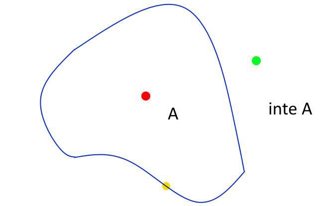 Vi kan dra en cirkel runt den röda punkten som ligger helt inom A. Därför är röd en inre punkt.