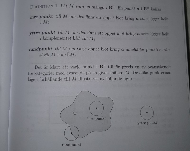 Freewheeling skrev:Definitionen av en rand borde stå i boken du använder, om du studerar någon kurs med tillhörande litteratur. Här är annars några definitioner som brukar återges i litteratur: https://en.wikipedia.org/wiki/Boundary_(topology)#Common_definitions