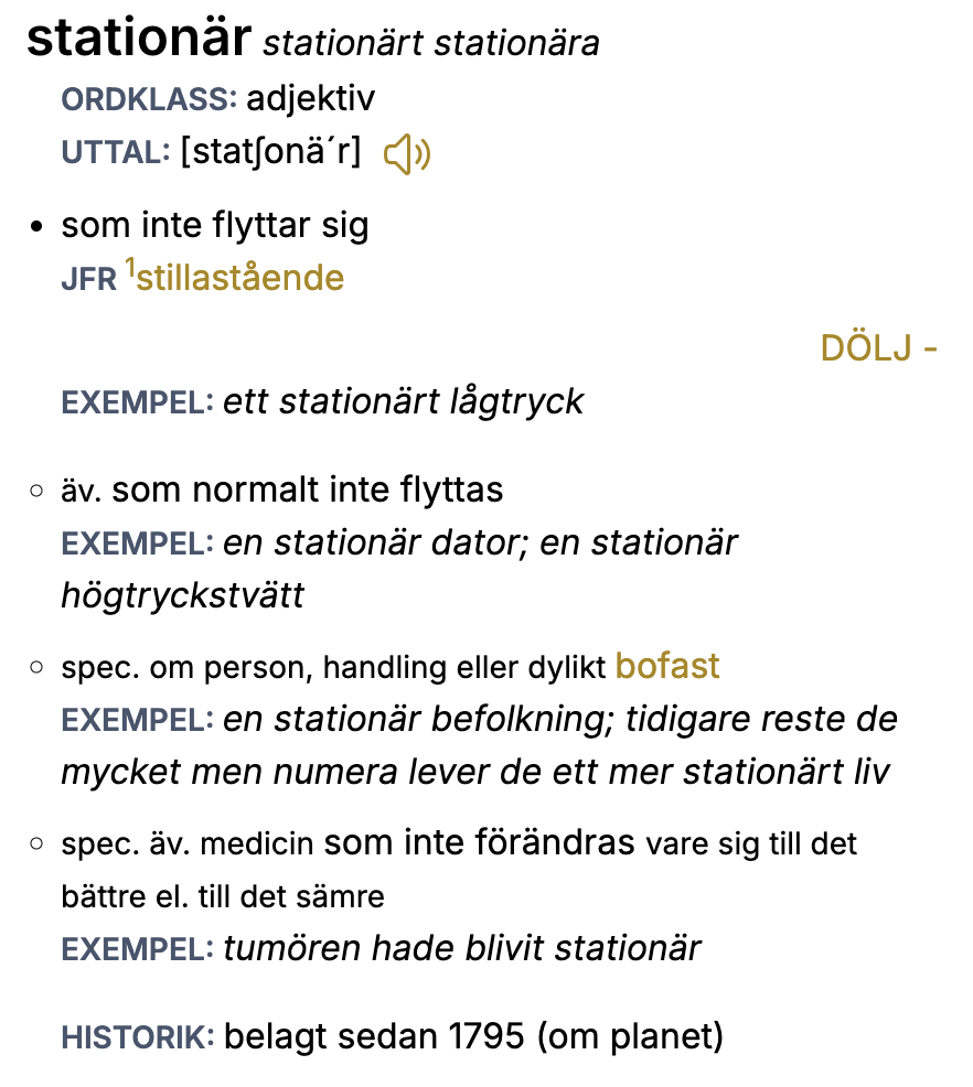 Stationär punkt är en term, det är inte den vanliga svenska definitionen
