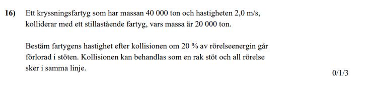 Ture skrev:Eftersom det är jobbigt att skriva V21 på datorn väljer jag att kalla den tunga båtens hastighet efter smällen för D, och den lättas för B