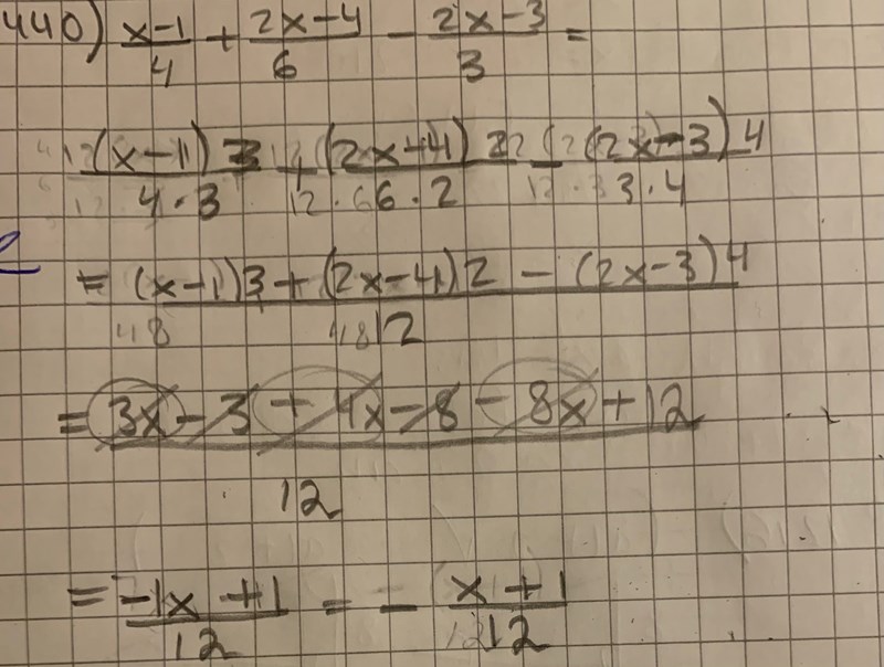 Sista steget. Vad måste man göra om man flyttar ut minustecknet att gälla för hela uttrycket?
