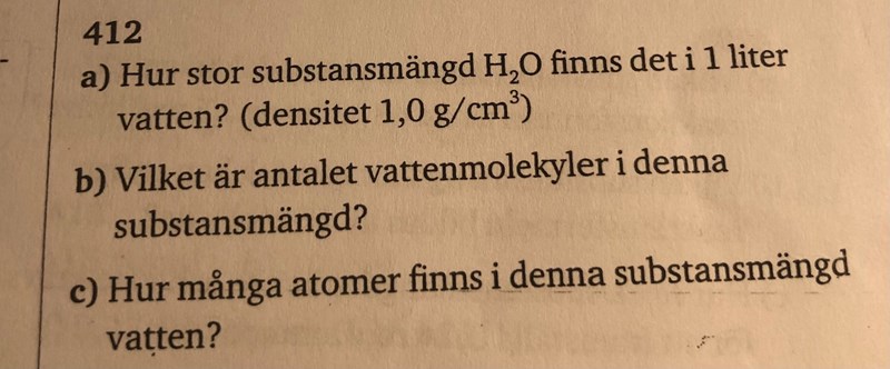 Hur beräknar man antalet vattenmolekyler på fråga b)?