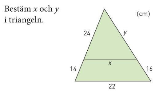 Det första felet du gör är att om du skall räkna ut x måste du använda topptriangelsatsen då får du 24/(24+14) i VL.