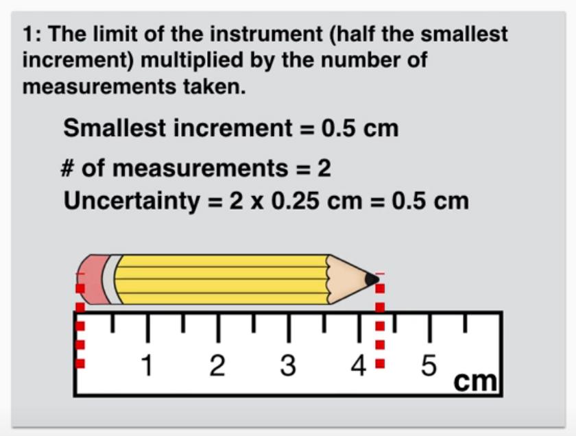 Är det fel att säger Osäkerhet i mätningar är alltid halv av den minsta enhet som verktyg har oavsett om vi jämför tvåsidig eller en sida spelar det ingen roll ( som University of Mississippi )