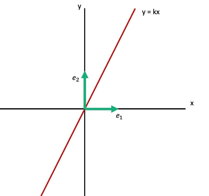 Vad händer med enhetsvektorerna när de speglas i linjen för något givet k? :)