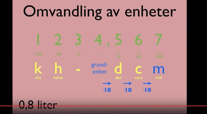 jag kollade på youtube där dom förklarar hur man på ett enkelt sätt kan räkna prefix nu pratar han om att 0,8l ska omvandlas till milliliter och man tar x1000 men hur vet man att man tar tre steg åt höger jag menar hur ska jag veta om om liter är nummer 4 där det står grundenhet som han påstår eller om de lika gärna kan vara nummer 1 eller 2? beroende på vilket steg och hur många steg man tar emellan dom ska man multiplicera med 10 eller dividera med 10