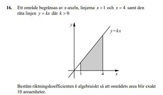 - Punkten B har ju koordinaterna (4, 4k) så triangeln ABC har arean 4*4k/2.