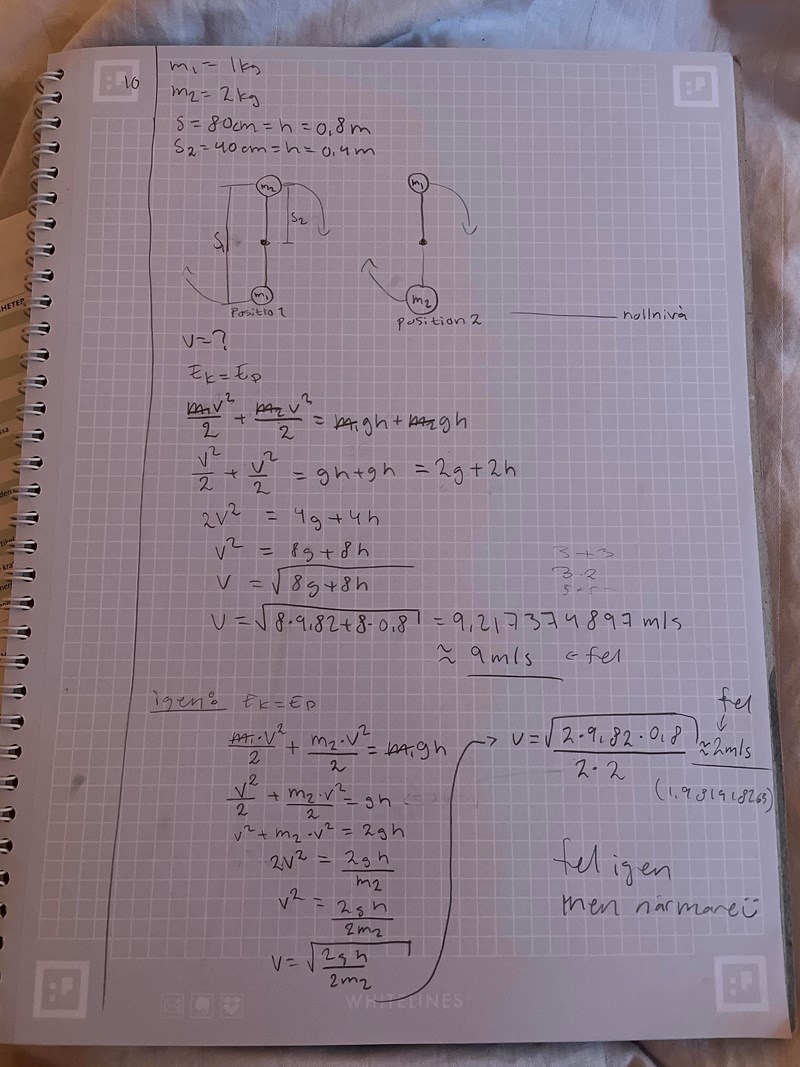 Så det är bara 0,8*9,82 som är lägesenergi som ska vara lika stor som Ek?