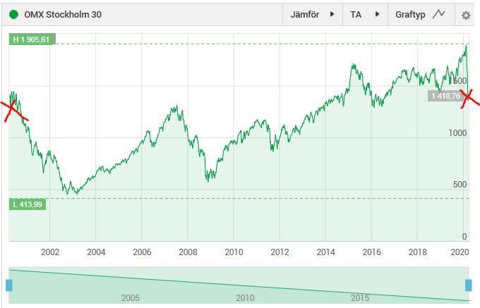 OMX 20 år är nu negativ. Så alla de som tror på börsen har blivit lurade.