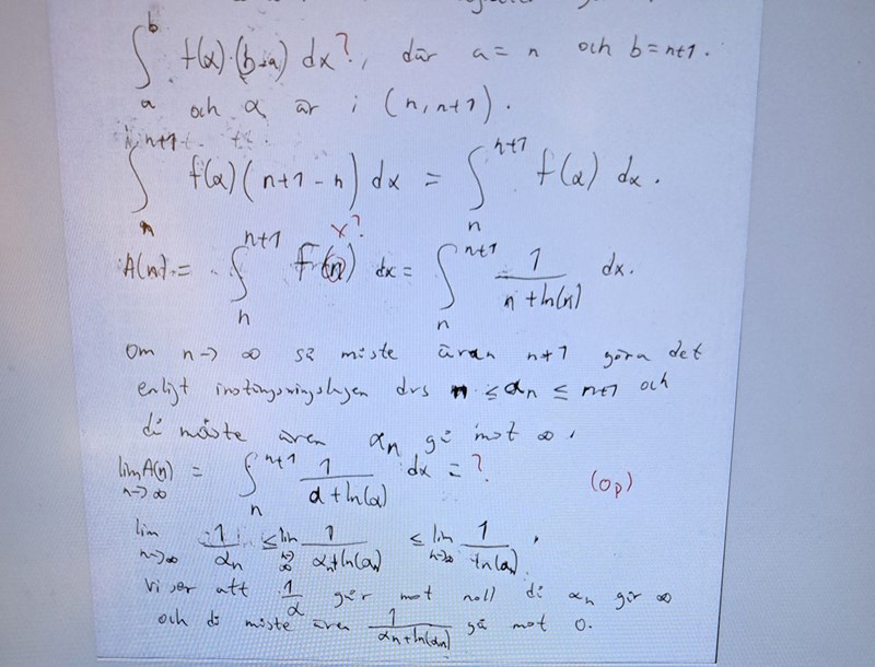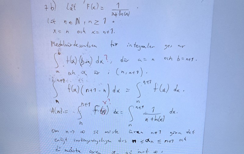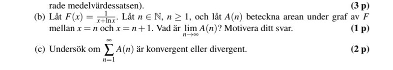 Jag var ute och cyklade på denna fråga 7b och vet inte riktigt varför mitt sätt att lösa den är inte korrekt. Jag tänkte verkligen på generaliserade integraler när jag gjorde den. Hur ska man ha gjort istället?