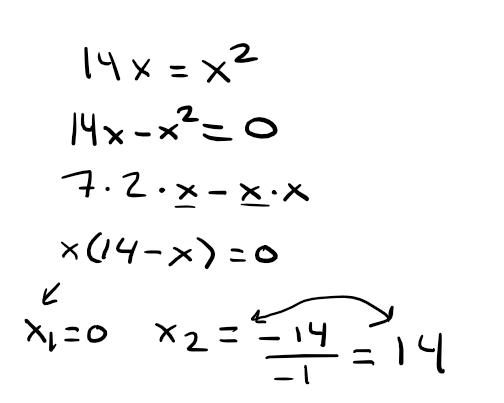 Jag undrade vad lösningsformeln är och hur jag ska lösa problemet V) 14x = x^2