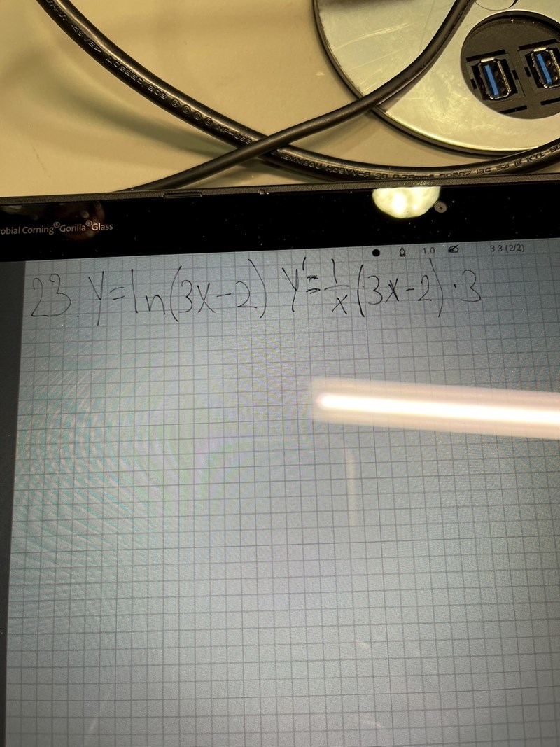 ska (3x-2) in istället för x jag vet jag ska multiplicera 3 med 1 i täljare en så det kommer bli y’= 3/x (3x-2)